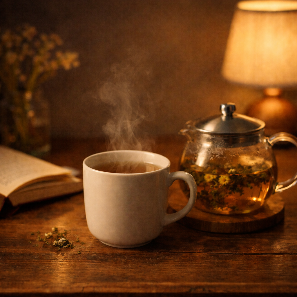 お風呂のあとは、温かい飲み物を用意します。ハーブティーは、必ずしもカモミールでなくても大丈夫で、その日の気分で選んでいます。クセの少ないものや、香りがやさしいものを選ぶと、自然と呼吸が深くなります。飲み切れなくても「用意した」というだけで、気持ちが落ち着くこともあります。